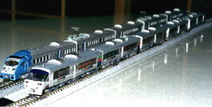 783系1994水戸岡カラーです。 ヘッド(4灯)・テールライト(運転室上部含む)点灯 連結部は全てTNカプラー(マウント)タイプを付けており、トイレタンクまで付けています。